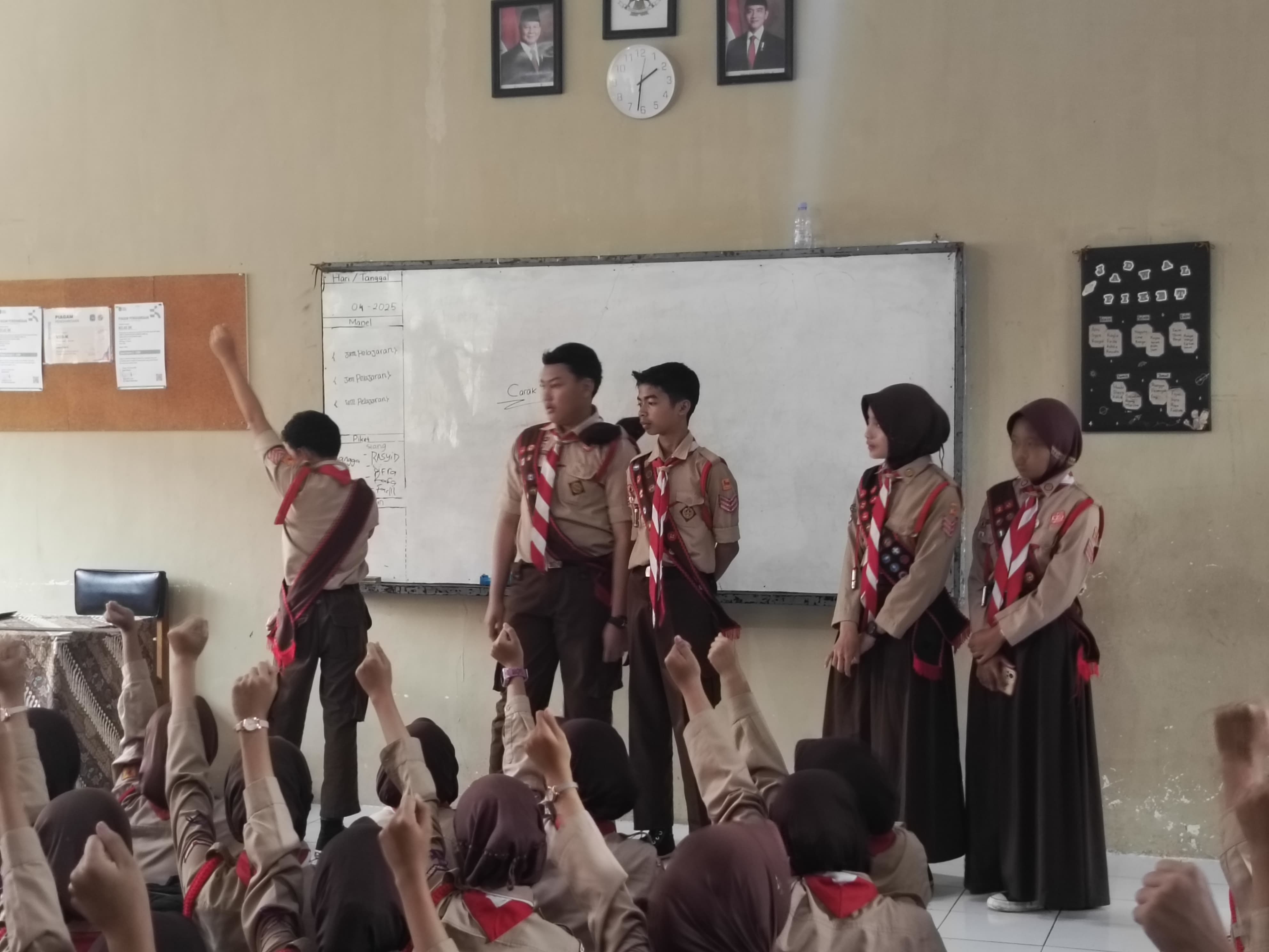 Cipanas – Pada Jumat, 25 April 2025, para calon Penggalang Rakit Pangkalan SMP Negeri 1 Cipanas mengikuti kegiatan pembekalan materi semaphore yang disampaikan oleh Divisi Tekpram (Teknik Kepramukaan) Dewan Penggalang Angkatan 38.